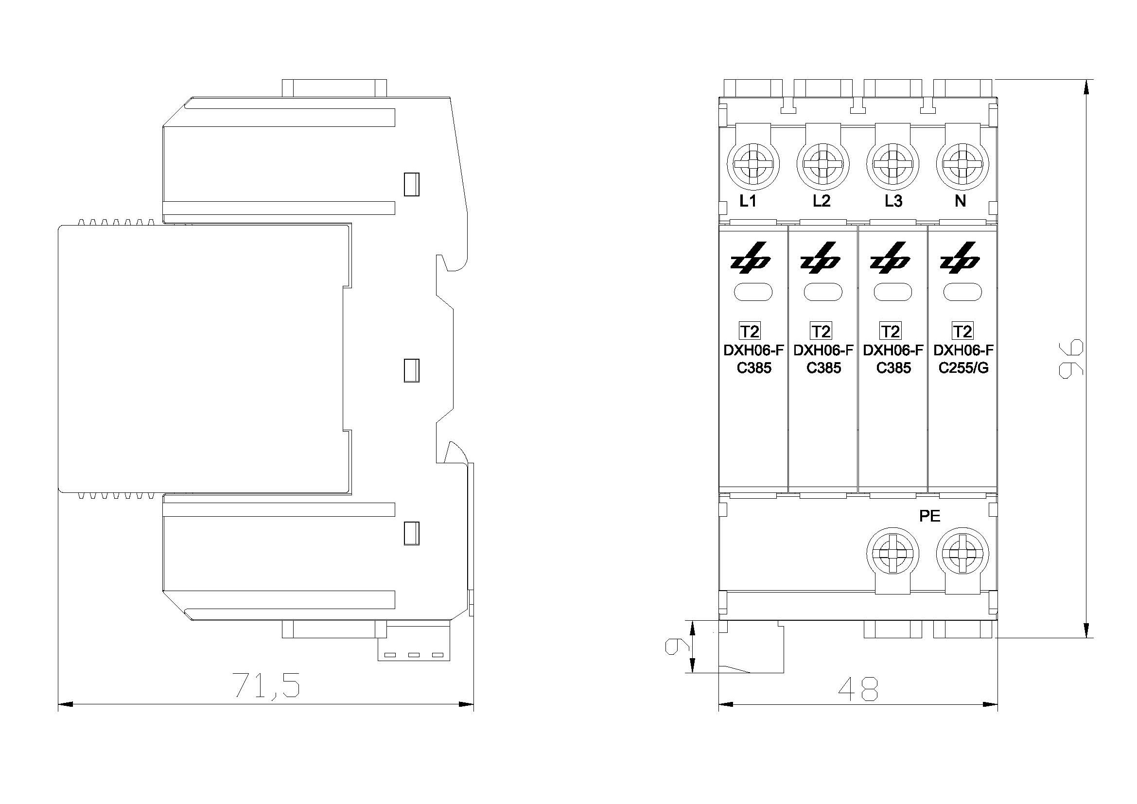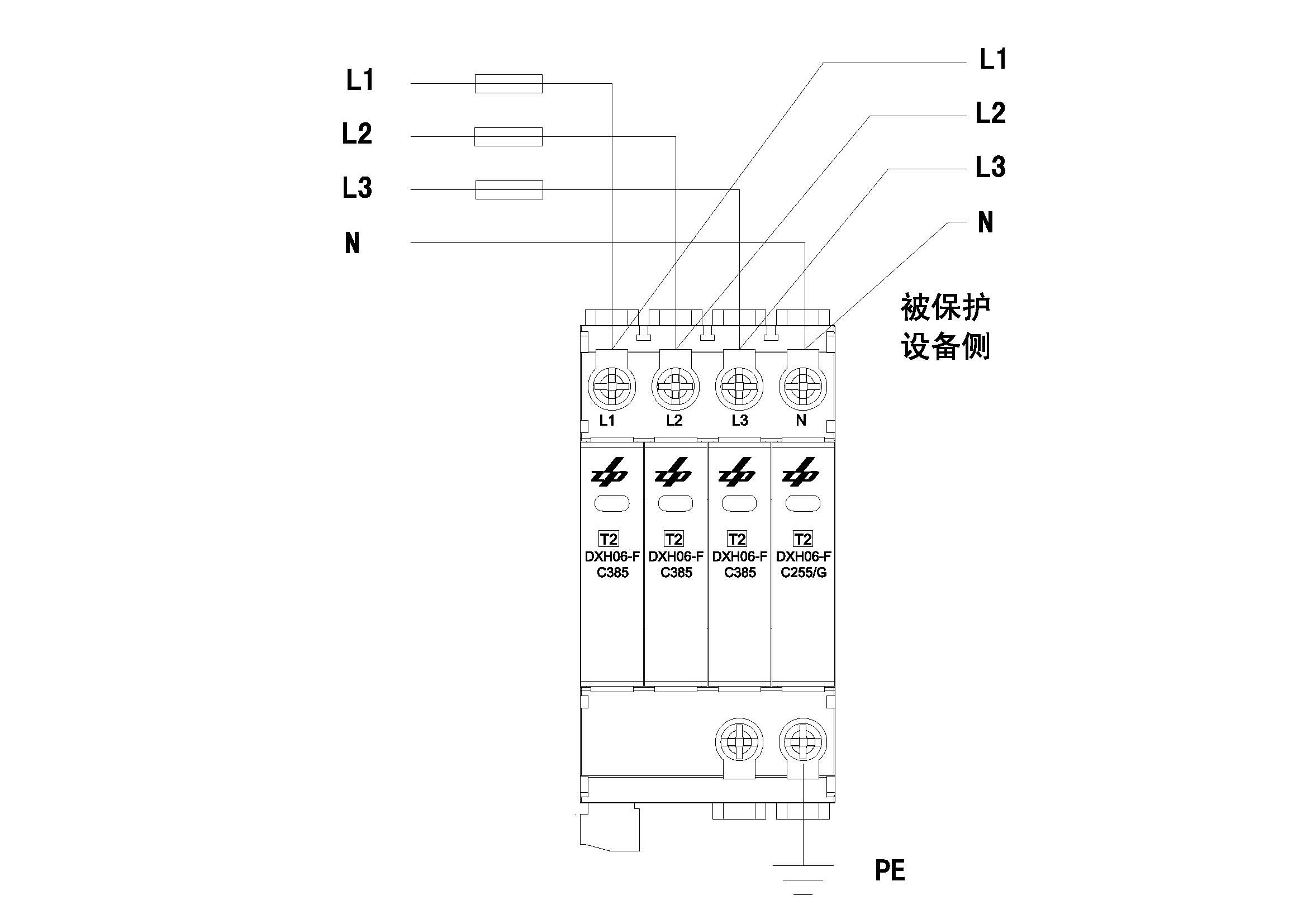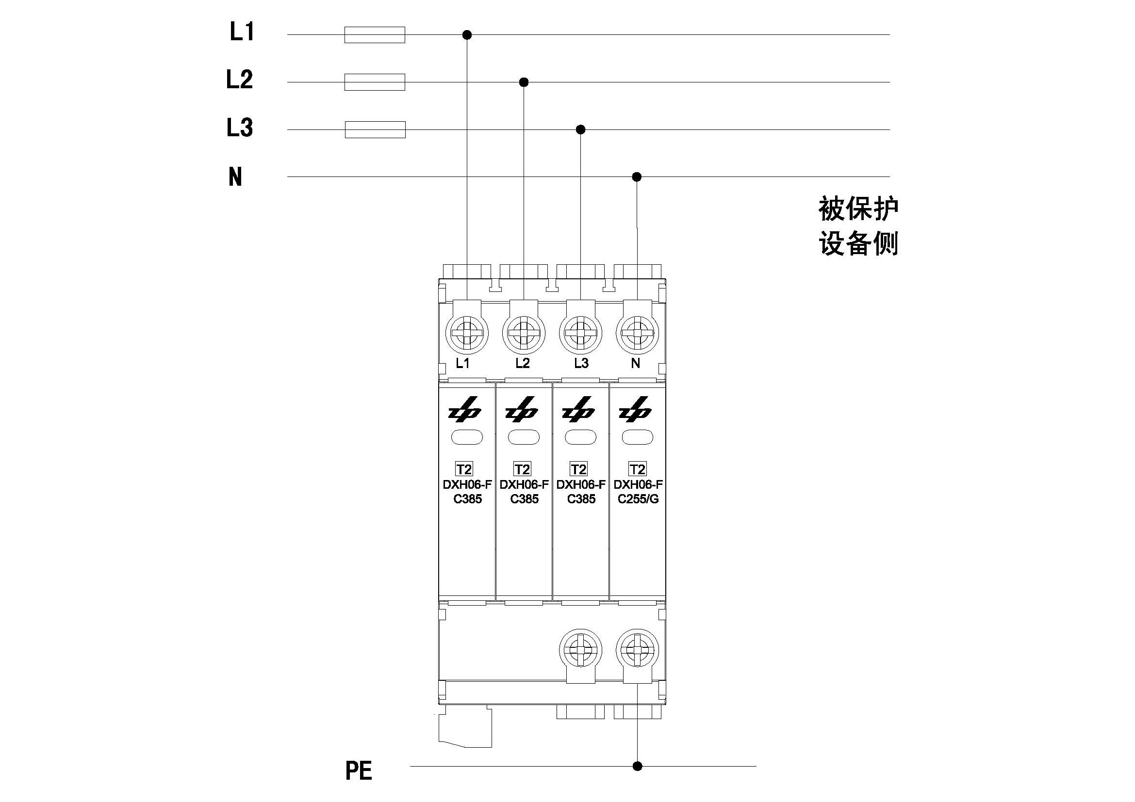 DXH06-FC385/3+1電涌保護(hù)器,適用于220/380Va.c.電壓系統(tǒng),配電系統(tǒng)以及終端設(shè)備的電涌保護(hù),應(yīng)安裝在防雷區(qū)1(LPZ1)和防雷區(qū)2(LPZ2)的界面處。