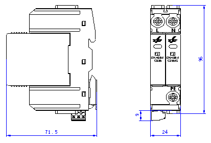 圖4-1 DXH06-FC385/2型電涌保護(hù)器外形尺寸(單位:mm)