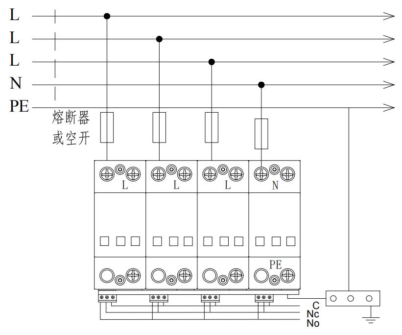 1 模塊結(jié)構(gòu)防雷器接線圖如安裝接線圖所示: