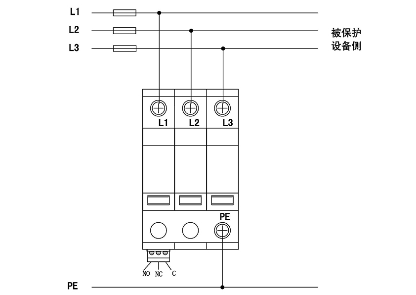 DXH06-FCS/3R40(600V)電涌保護(hù)器,適用于線電壓不超過550V電壓系統(tǒng),配電系統(tǒng)以及終端設(shè)備的電涌保護(hù),應(yīng)安裝在防雷區(qū)1(LPZ1)和防雷區(qū)2(LPZ2)的界面處。