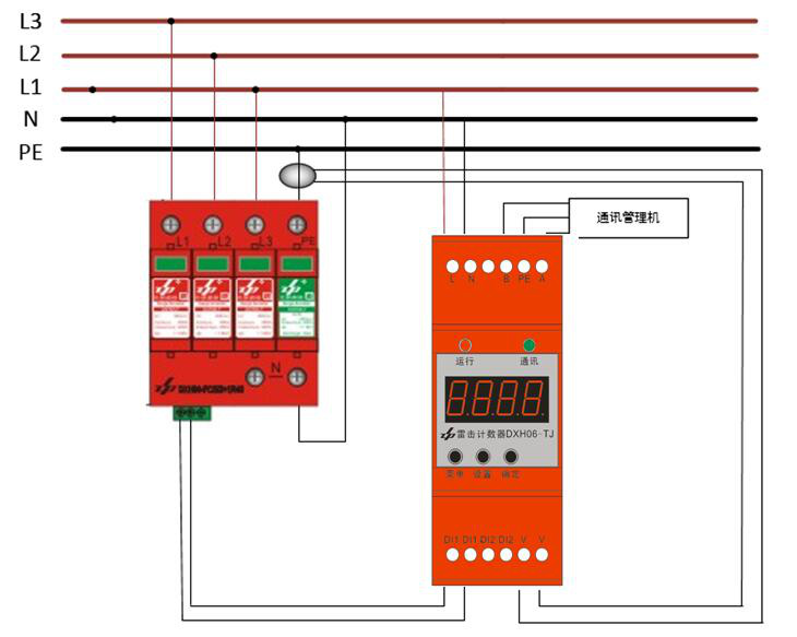 DXH06-TJ雷擊計(jì)數(shù)器是我公司新開發(fā)的一款智能型雷擊計(jì)數(shù)器,適用于電源防雷箱、帶防雷模塊的電源配電箱內(nèi)等,也可以配合雷電在線監(jiān)測系統(tǒng)使用。能實(shí)時(shí)監(jiān)測防雷器對(duì)雷電泄流次數(shù)、監(jiān)測防雷器的狀態(tài)、箱內(nèi)溫度以及能夠準(zhǔn)確記錄雷電流泄流時(shí)間。自帶隔離的RS485接口,能將監(jiān)測到的數(shù)據(jù)和狀態(tài)上傳。