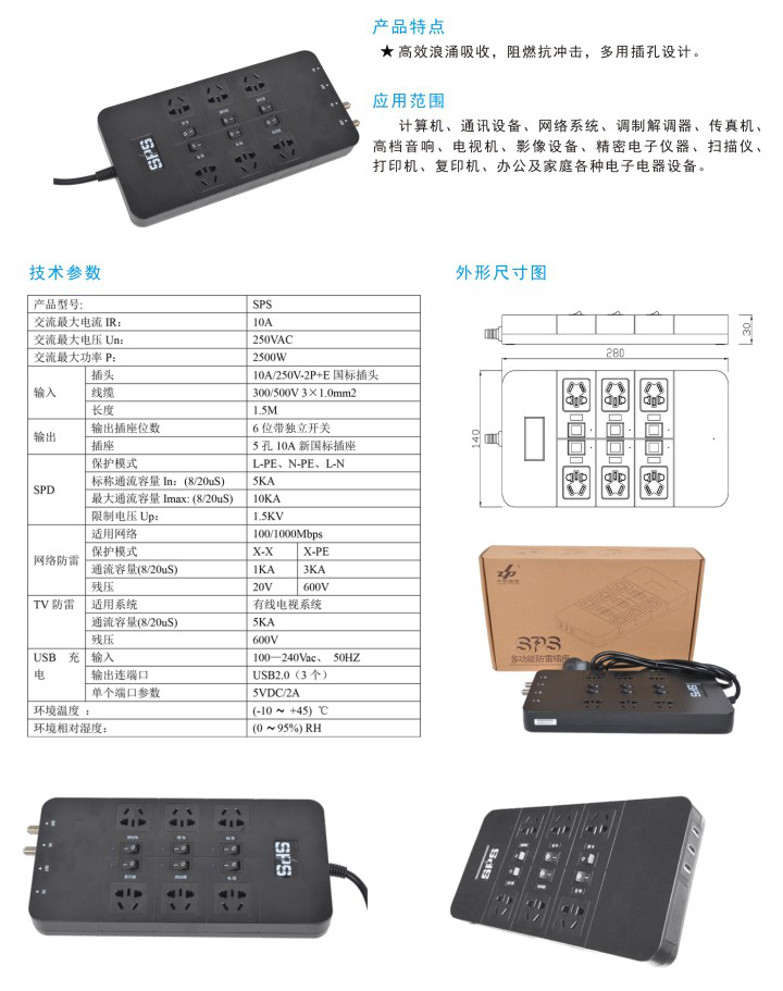 湖南中普 ZP 防雷插座 USB快充 獨立開關 家用電器保護 SPS