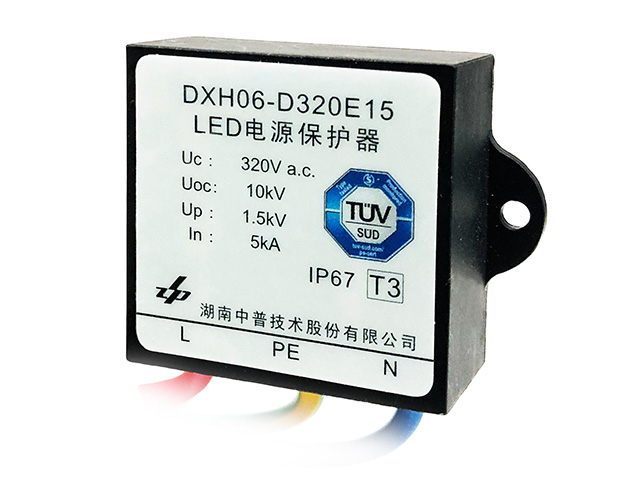 DXH06-D320E15型浪涌保護器,主要應用于LED照明系統(tǒng)中瞬時過電壓、過是流的電涌保護。
