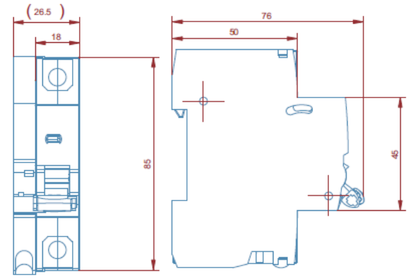產(chǎn)品采用 35mm 標(biāo)準導(dǎo)軌安裝,單模尺寸為:76×85×36(mm),未標(biāo)注公差:±0.5mm。如下列圖所示(單位:mm):