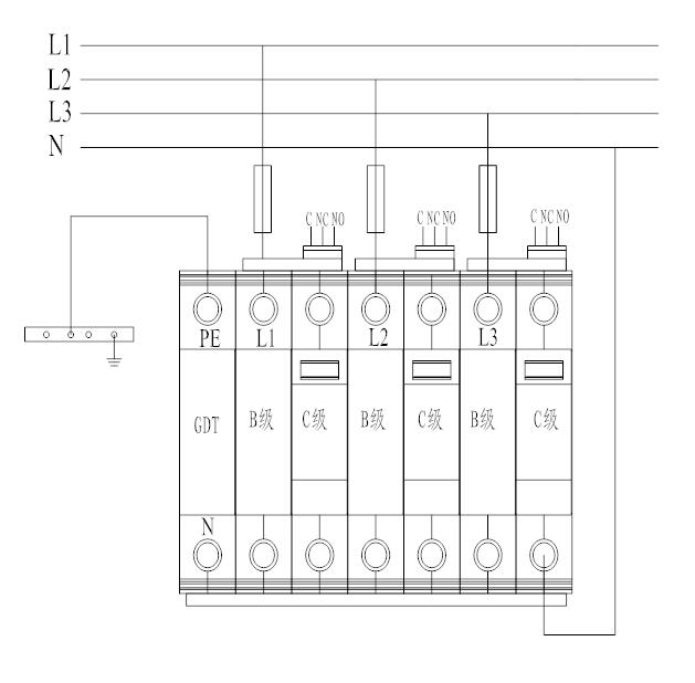 5.5 防雷器前端串接相應(yīng)的熔斷器315A 或空開(C63A)。